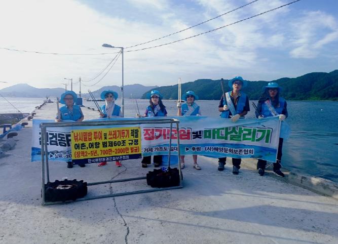바다살리기의 일환으로 낚시밑밥 투여 금지 및 쓰레기투기 적발관련 홍보간판을 설치하여 해양환경보존 캠페인을 하고, 가조도 일대 해양쓰레기 수거작업도 하였습니다.