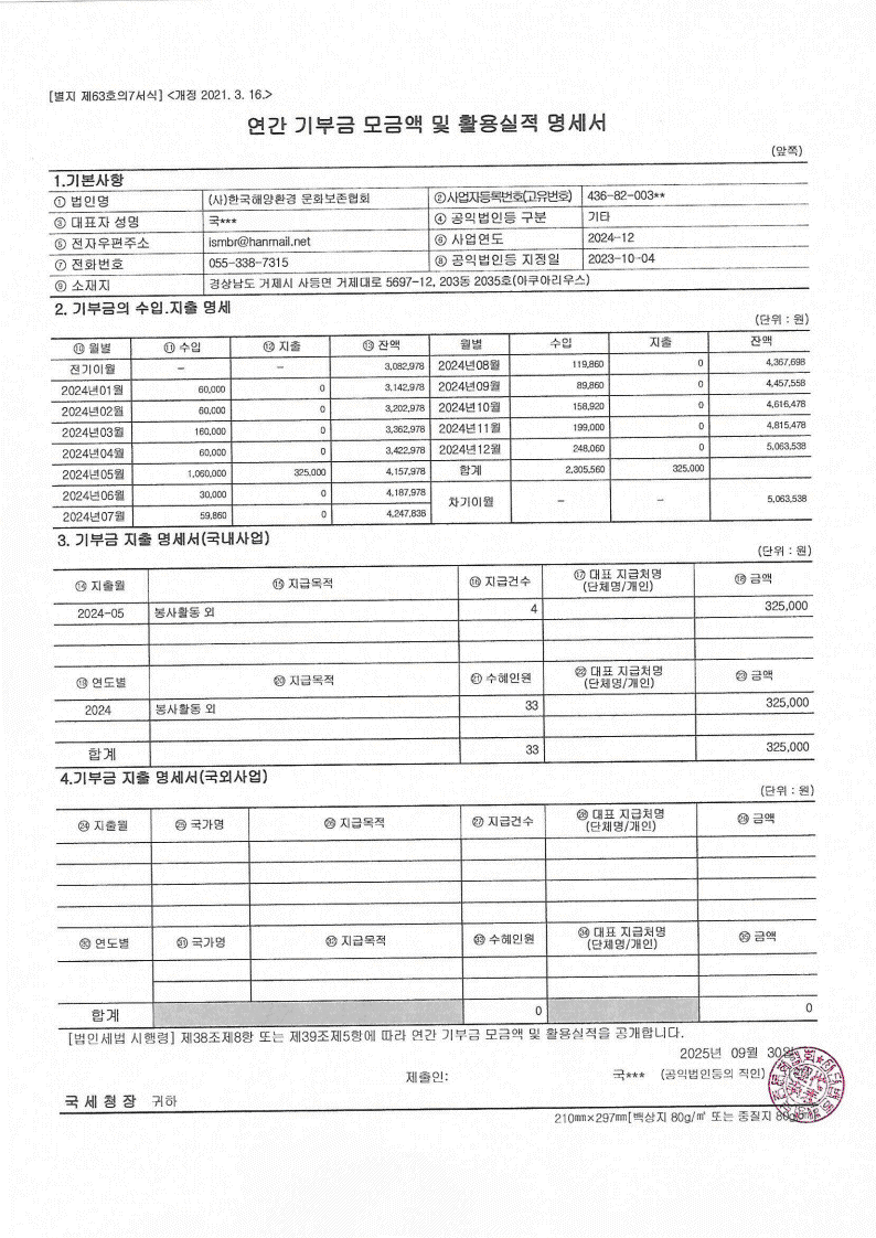 2024년 사업실적표 및 결산서